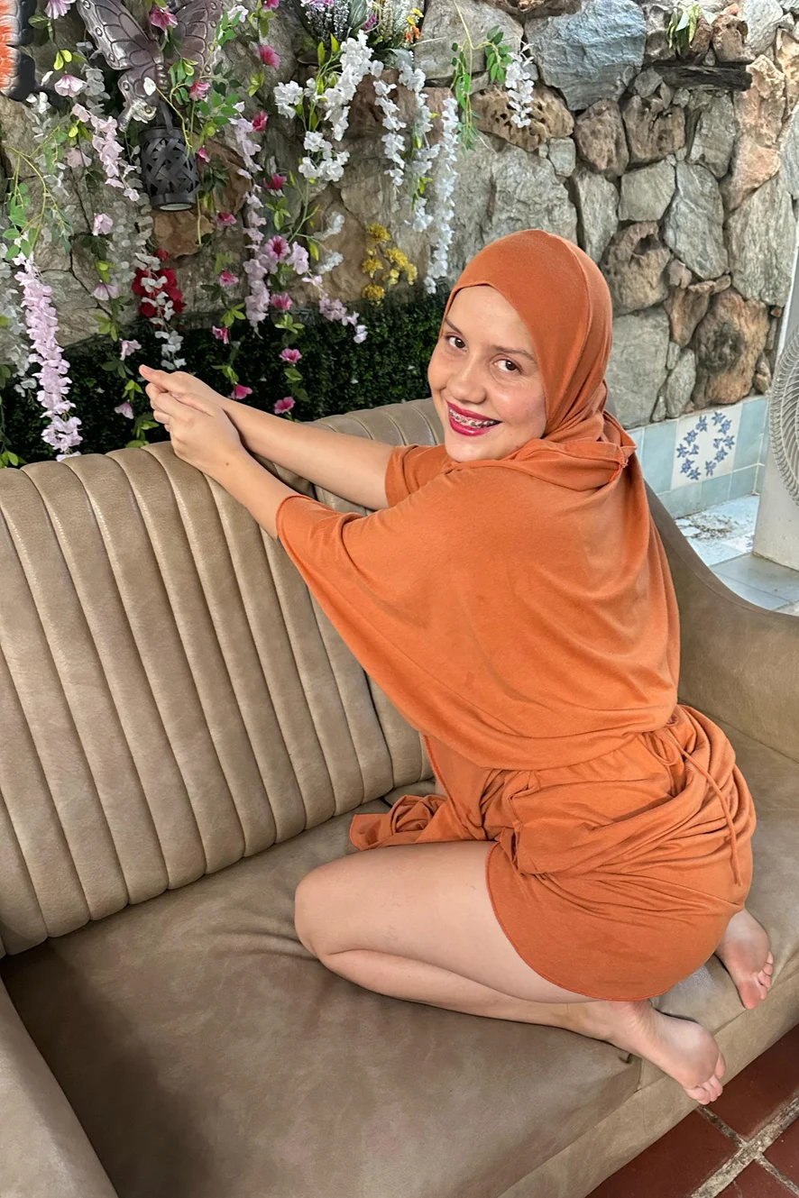 There's a serene beauty about her, a kind of seduction that doesn't seek to impress, but to connect. Every movement seems deliberate, every smile holds a delicate intention.